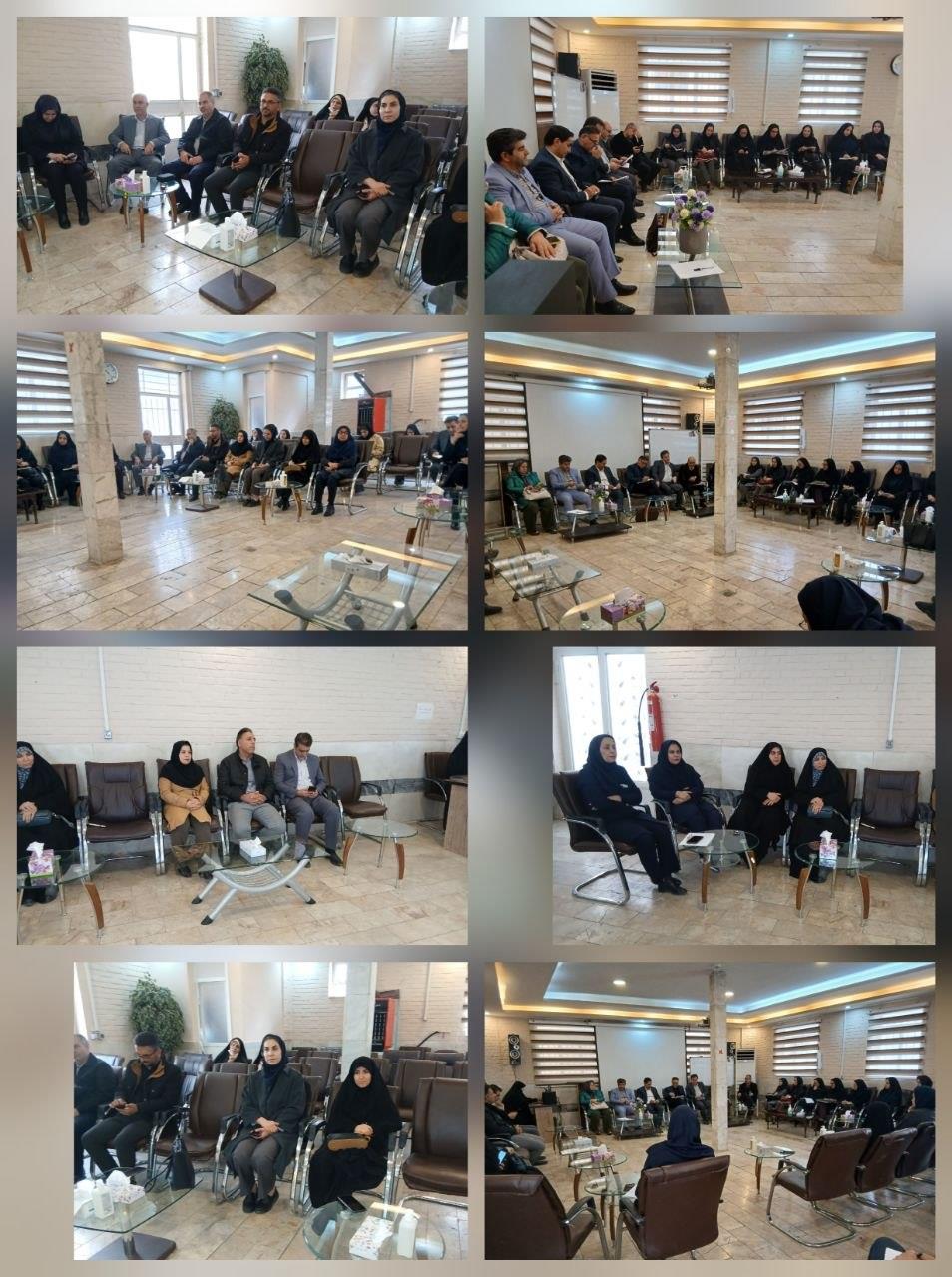 دراین نشست تخصصی فرابخشی با حضور نمایندگان، دکترعباسی (دادگستری) دکترشهلایی (غذا دارو) دکترعزیزی (مدیرمعاونت درمان) دکترداوری نژاد (روانپزشک) خانم کاظمی( مامایی) خانم موحد (طرح نفس) دکترمنصوری رئیس بیمارستان ،خانم دادفریان مدیر ودیگر مسئولین مرکز .